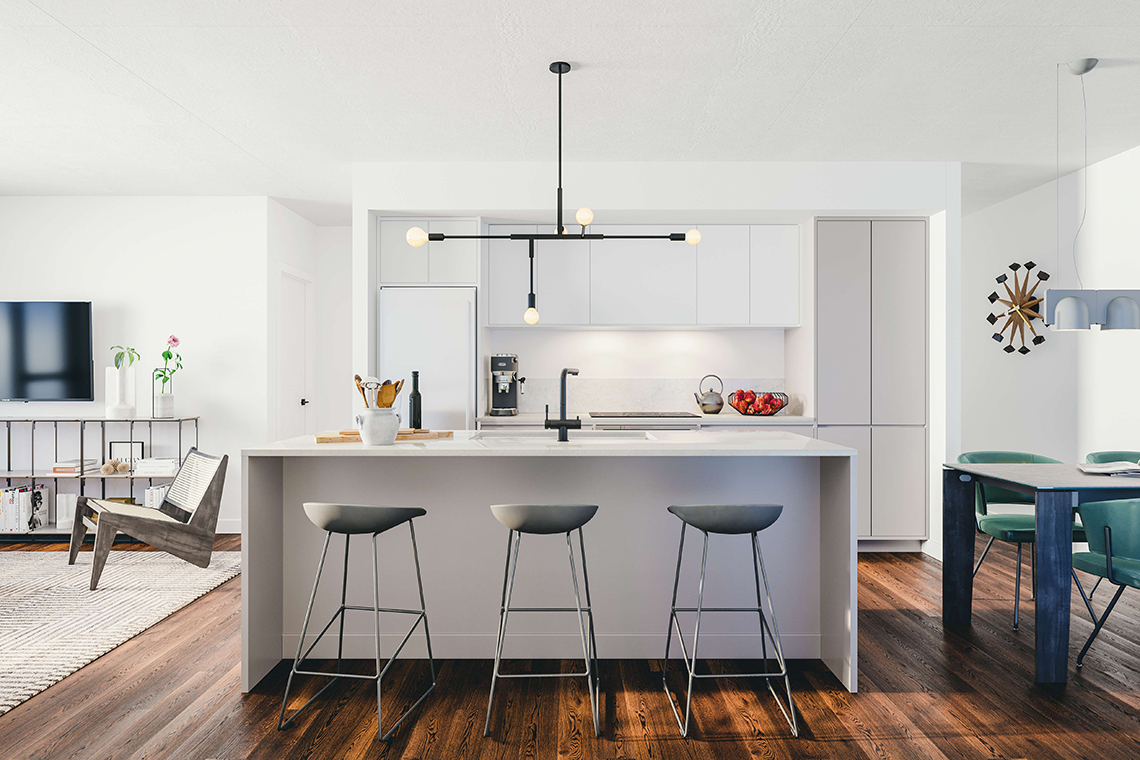 - Éclairage intégré au DEL sous les armoires de cuisine.