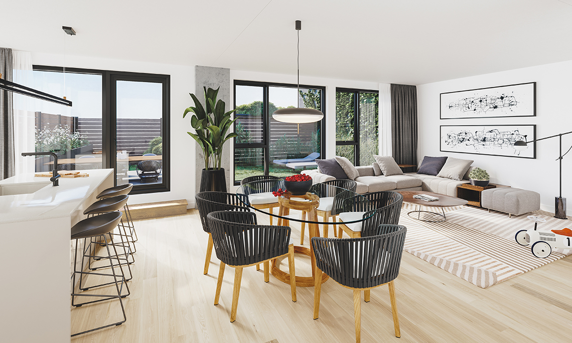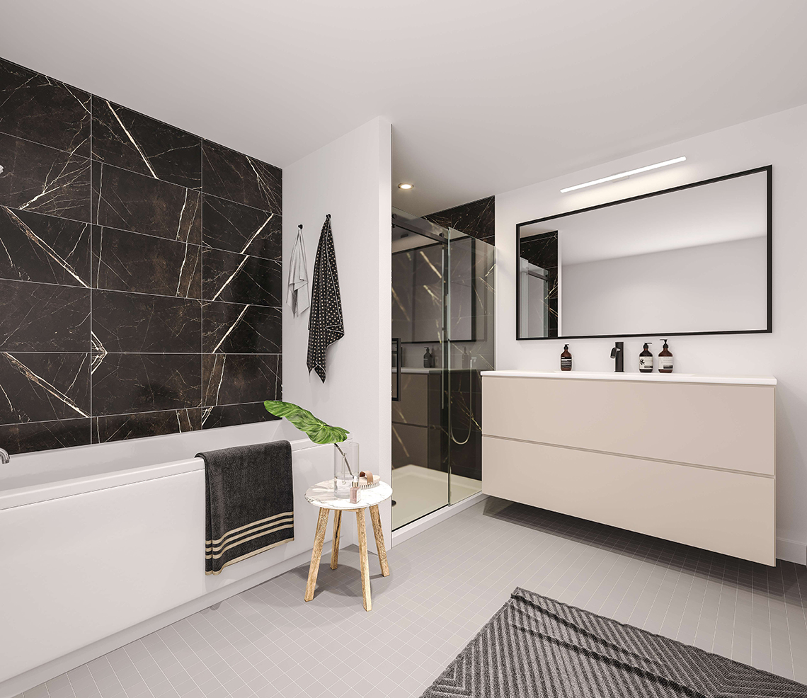 - Fenêtres d’aluminium à-battant ou fixe, selon l’emplacement, avec verre Low-e Argon et moustiquaire.