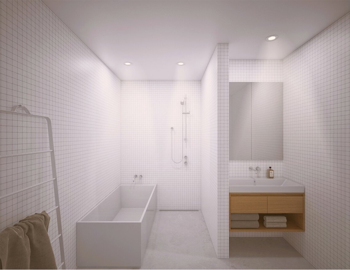 - Luminaires encastrés DEL dans l’entrée et les salles de bains