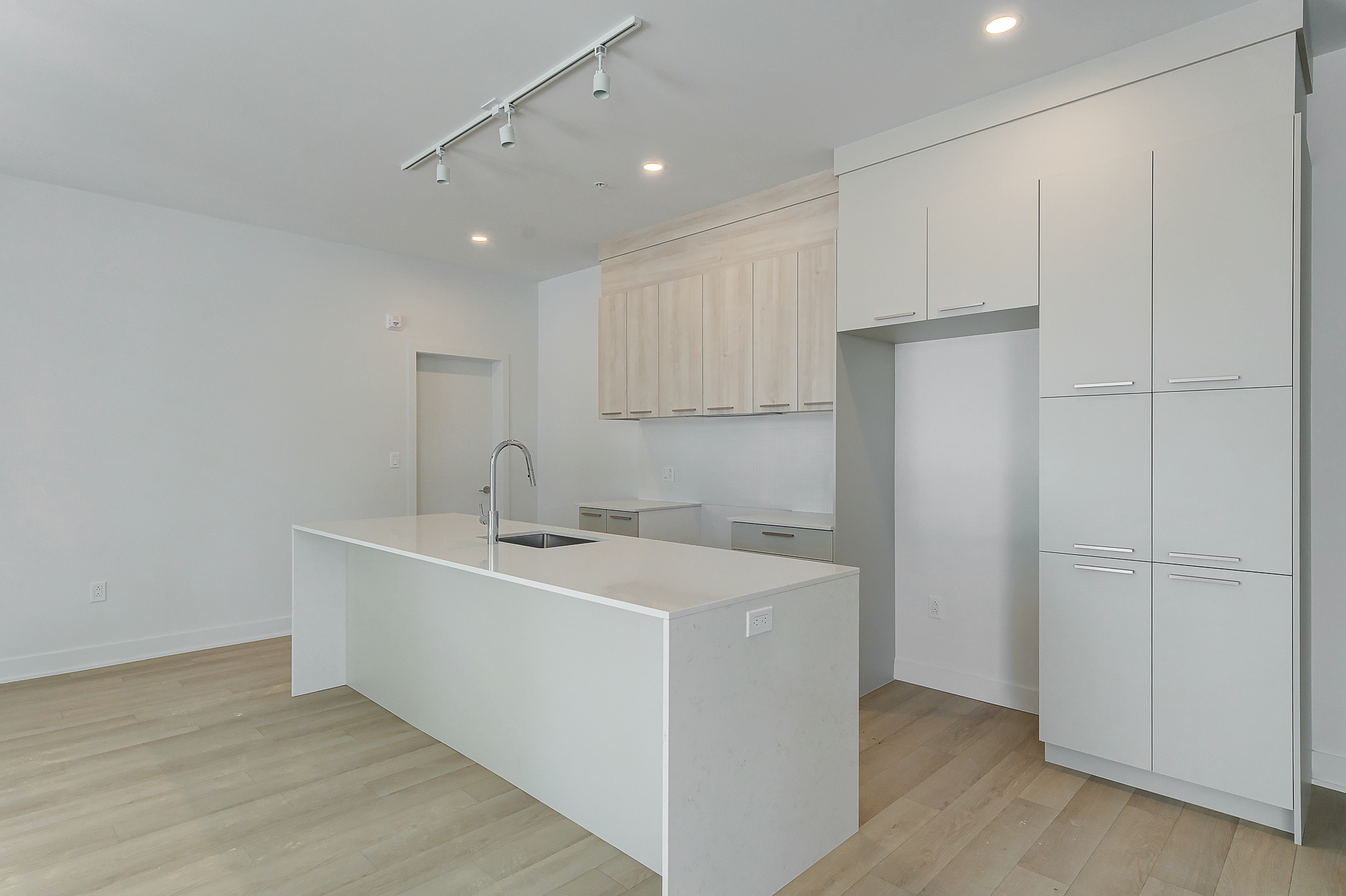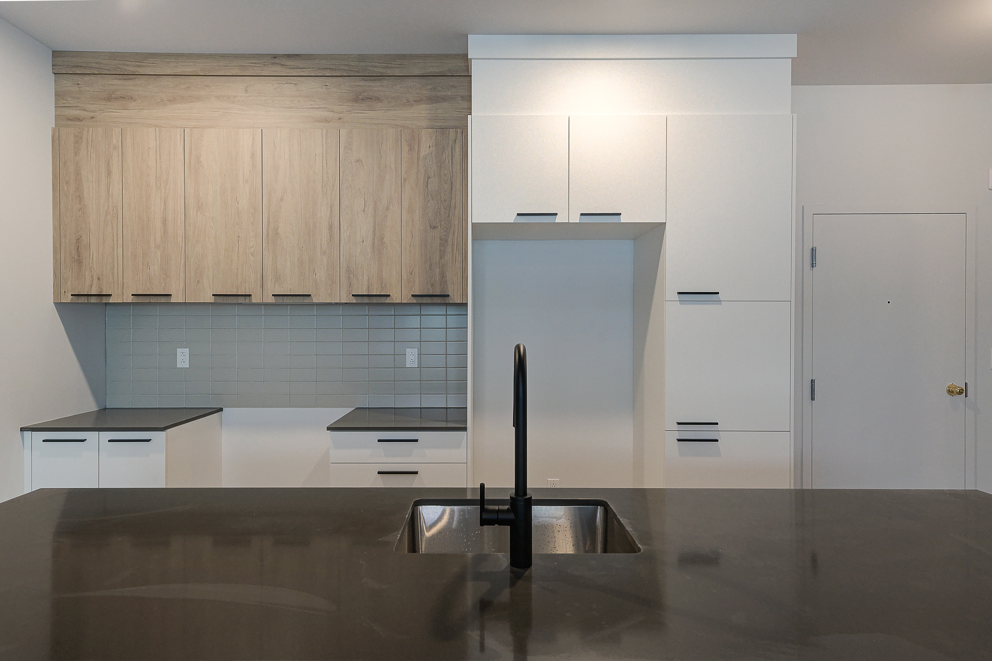 Planchers d’ingénierie SPC, comptoirs en quartz, thermopompe murale pour un confort optimal, stationnement intérieur et espace de rangement inclus.