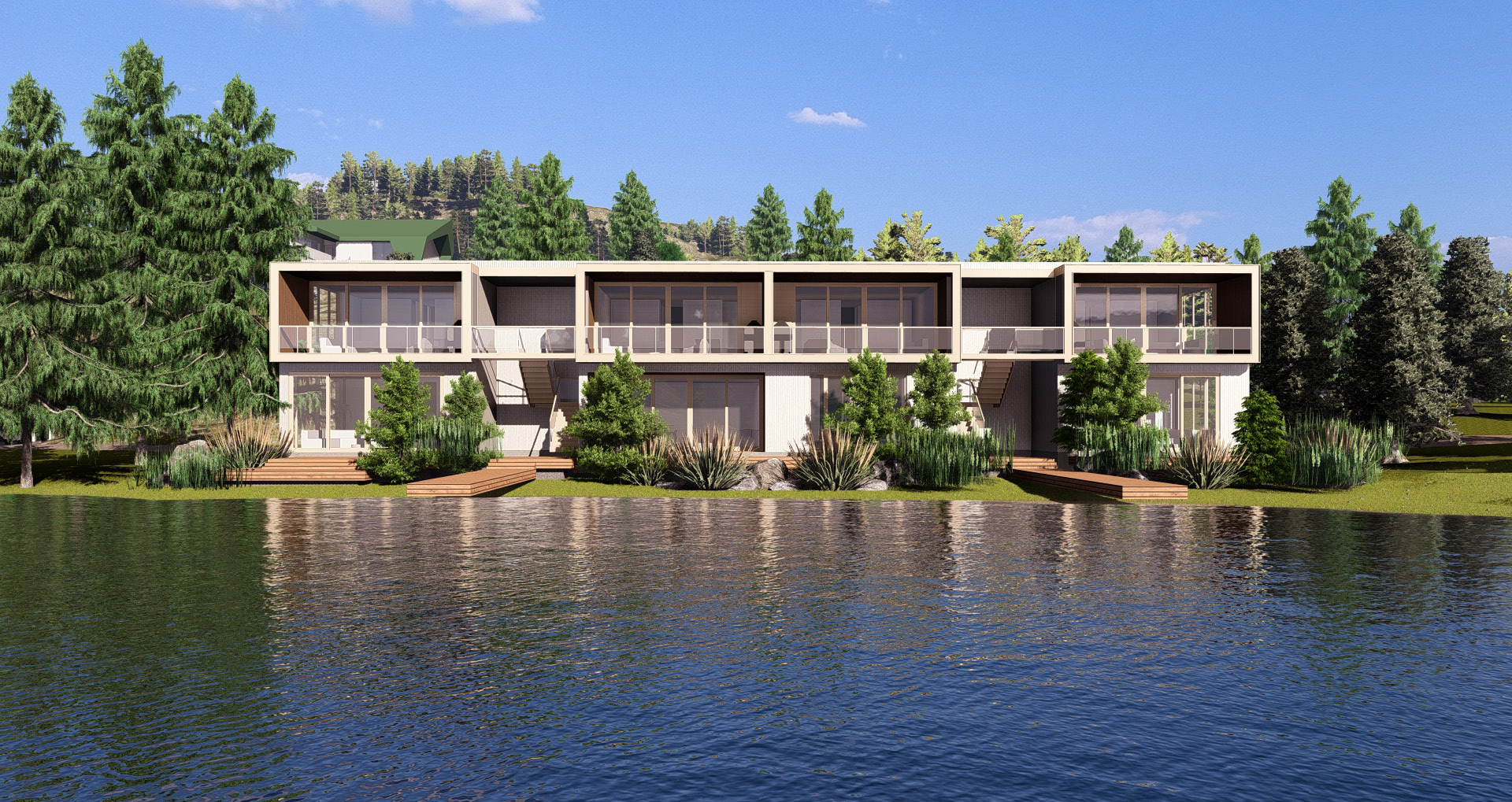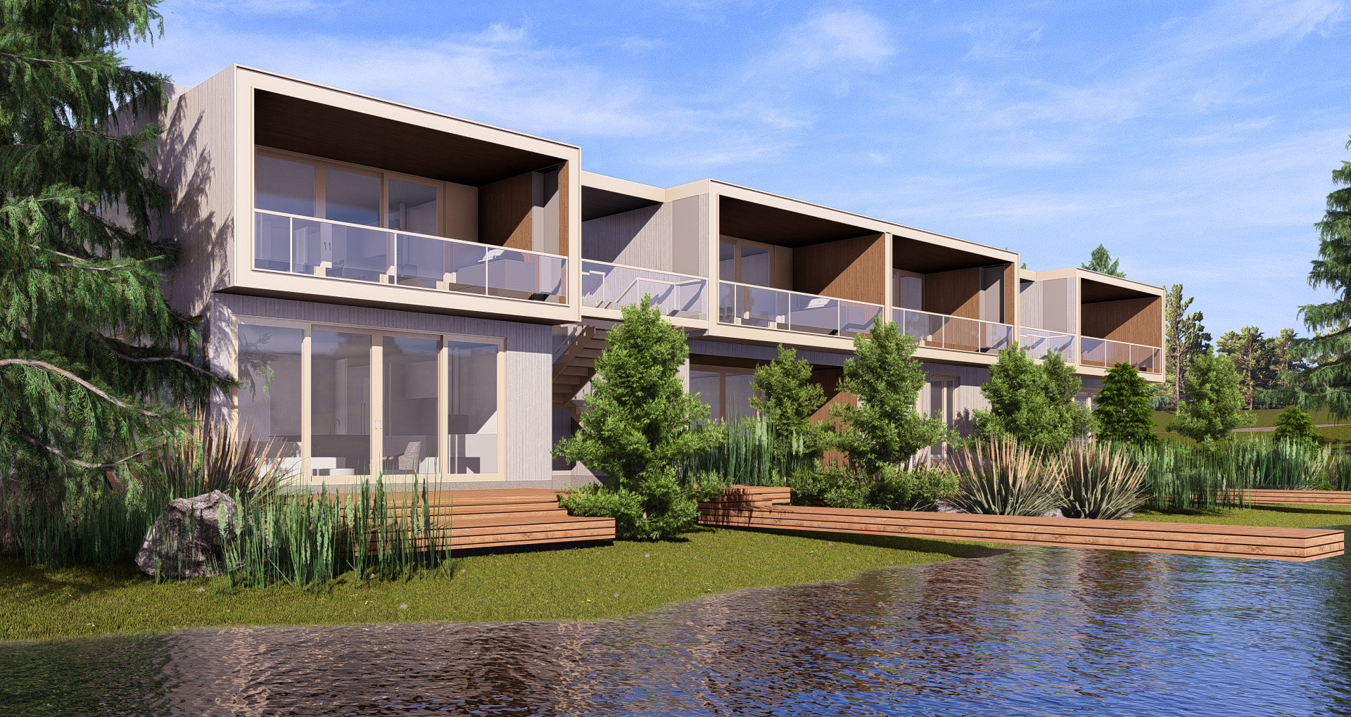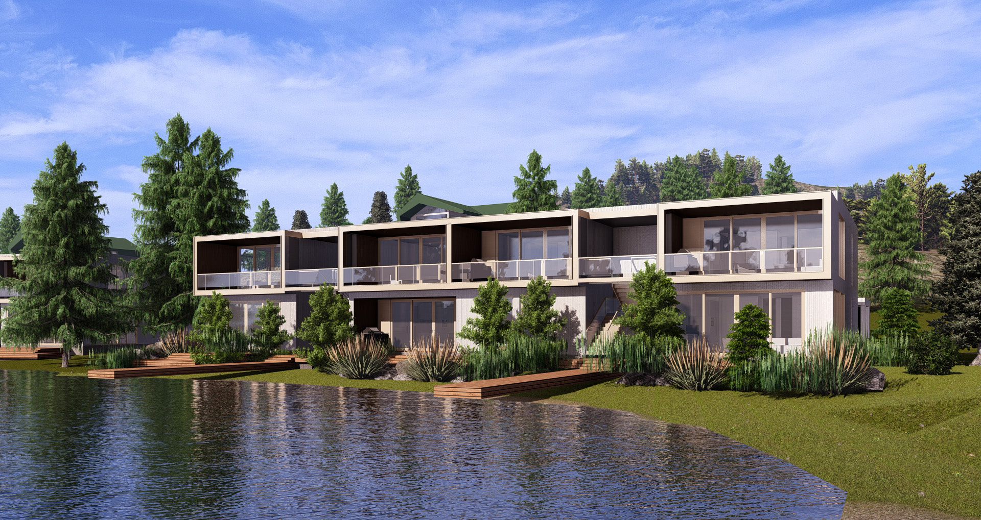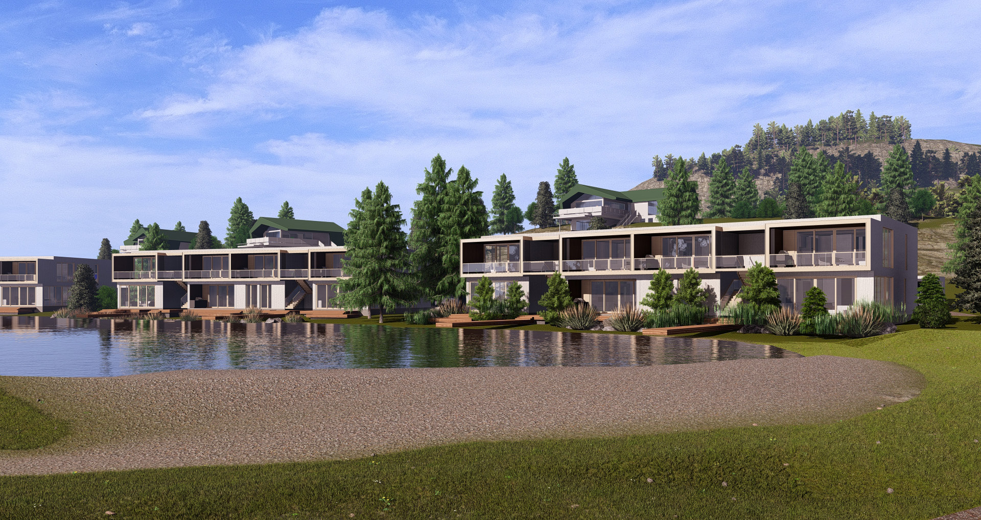 À partir de 500 000 $ + taxes, ces unités contemporaines de 2 chambres et 2 salles de bain proposent un accès direct à un lac artificiel privé — un privilège rare dans la région. Chaque condo est idéalement situé à quelques pas du futur club house, qui comprendra :